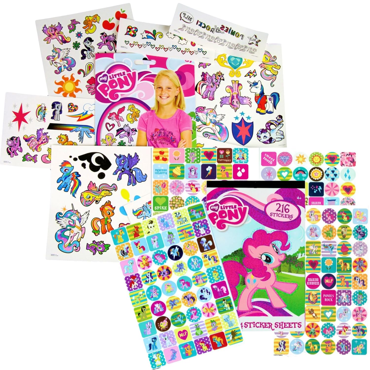 My Little Pony Stickers & Tattoos Party Favor Pack - My Little Pony Stickers & Tattoos Party Favor Pack - 216 Stickers & 75 Temporary Tattoos. Colorful stickers & temporary tattoos featuring Twilight Sparkle, Rainbow Dash, Fluttershy, Pinkie Pie, Applejack, Rarity, Spike the Dragon, Princess Celestia, and Princess Luna! . 216 stickers are great for party favors, rewards, and more! Includes 75 temporary tattoos. Fun, fast to apply, easy to remove. Great fun for any My Little Pony fan! Perfect as party favors, rewards, and more!