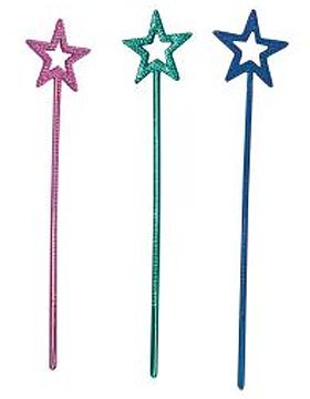 Metallic Star Wands (1 Dz) Every little girl is going to feel like a magical princess when they receive one of these metallic star wands. Hand these beautiful wands out as a party favor for any little girl's princess or fairy tale themed party. 1 Dozen Measures 14.5" Assorted Colors - 1 Dozen Measures 14.5" Assorted Colors