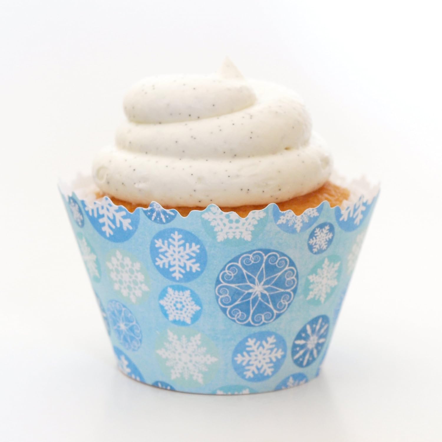 Winter Blue Icicle Snowflake frozen ADJUSTABLE Cupcake Wrapper - Set of 12 - Frozen January Cold Falling Snow Frozen Cup Cake Liners