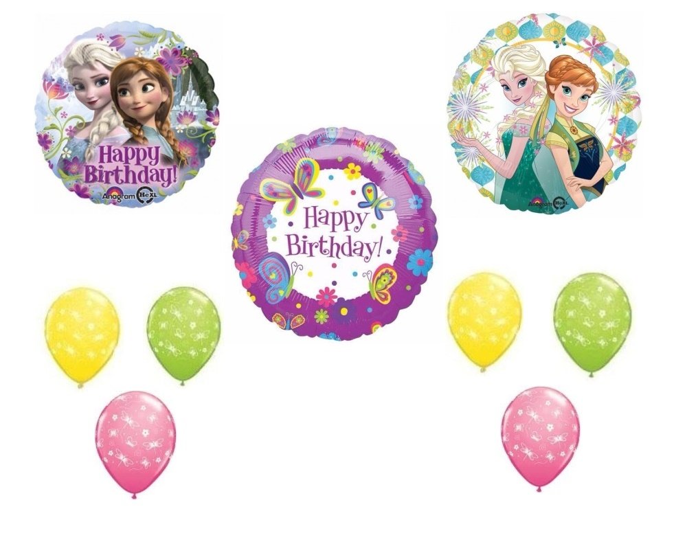 Frozen Fever Happy Birthday Decorations Kit 1 Frozen Fever foil Balloon 17" 1 Disney frozen Happy Birthday foil balloon 18" 18" Birthday Butterflies foil balloon 11" Butterflies & Dragonflies assortment latex balloons