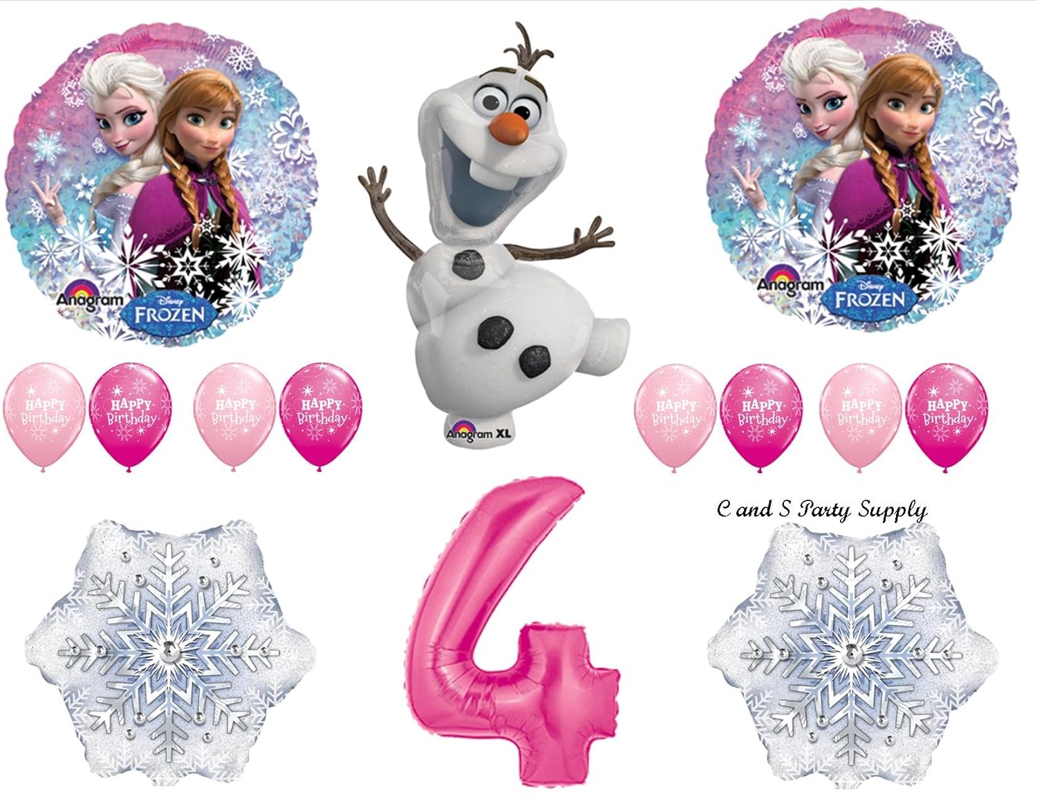 Pink Frozen 4th Birthday Balloon Decorations Supplies Mylar balloons, double sided and self sealing. Balloons by Anagram NEW!! DELIVERED UNINFLATED..JUST ADD HELIUM! From Disney's Hit Movie!!