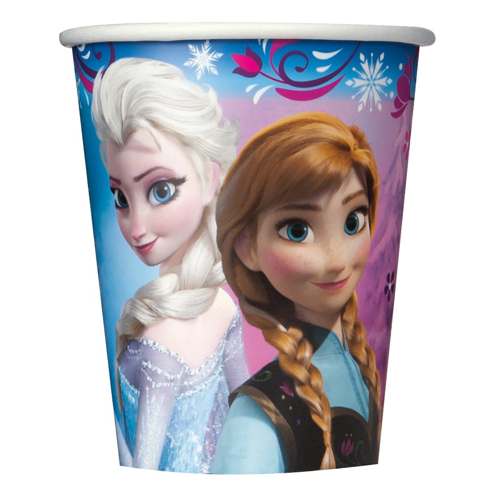 Package of 8 Disney Frozen Paper Cups Disney Frozen Paper Cups hold 9oz Serve hot or cold beverages in these adorable paper cups After party clean up is easy with disposable tableware Coordinate with other Disney Frozen party supplies and decorations from Unique
