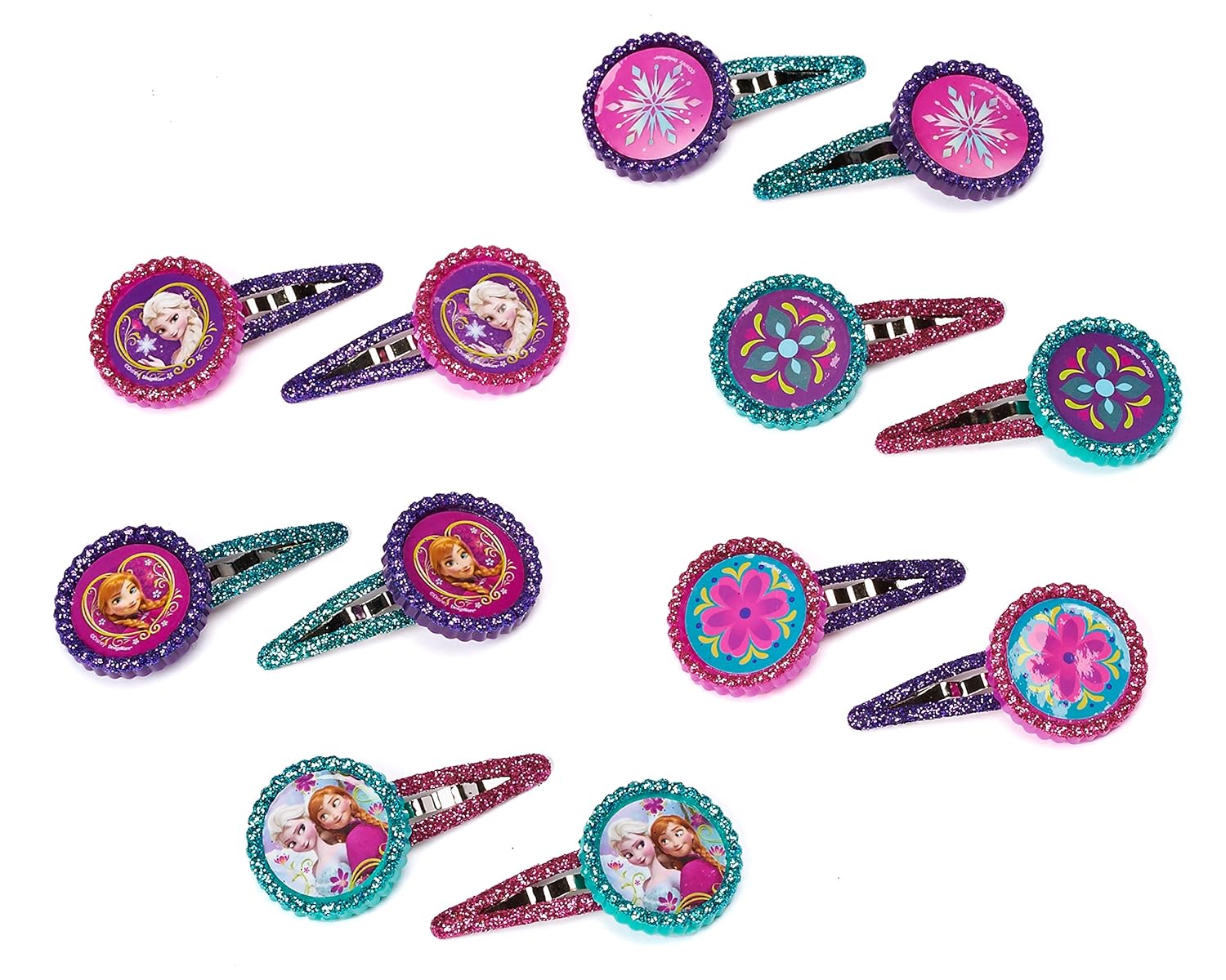 Throw a birthday party worthy of a fairy tale for your favorite little Frozen fan! American Greetings offers a large selection of Disney's Frozen party supplies, party favors, birthday decorations, tableware and invitations - now available on Amazon! Your party will be a super-cool celebration worthy of Princess Anna and Queen Elsa of Arendelle!. 12 hair clips Barrettes clip in easily 6 unique designs with glitter accents These fun Frozen hair clips feature Elsa the Snow Queen and her sister, Princess Anna! Perfect party favors for a kids birthday party or a Disney Frozen themed party